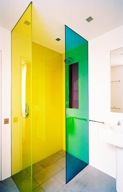 Երբ խոսքը վերաբերում է ապակու գույնի ընտրությանը, ընտրեք մոնոքրոմատիկ գունային համադրություն՝ օգտագործելով կապույտի կամ կանաչի երանգներ՝ հանգիստ մթնոլորտ ստեղծելու համար: Այլ կերպ, կարող եք ընտրել համարձակ և անսպասելի երանգ, ինչպիսիք են վառ վարդագույնը կամ դեղինը, որպեսզի ձեր լոգարանում իրական շունչ ստեղծեք: