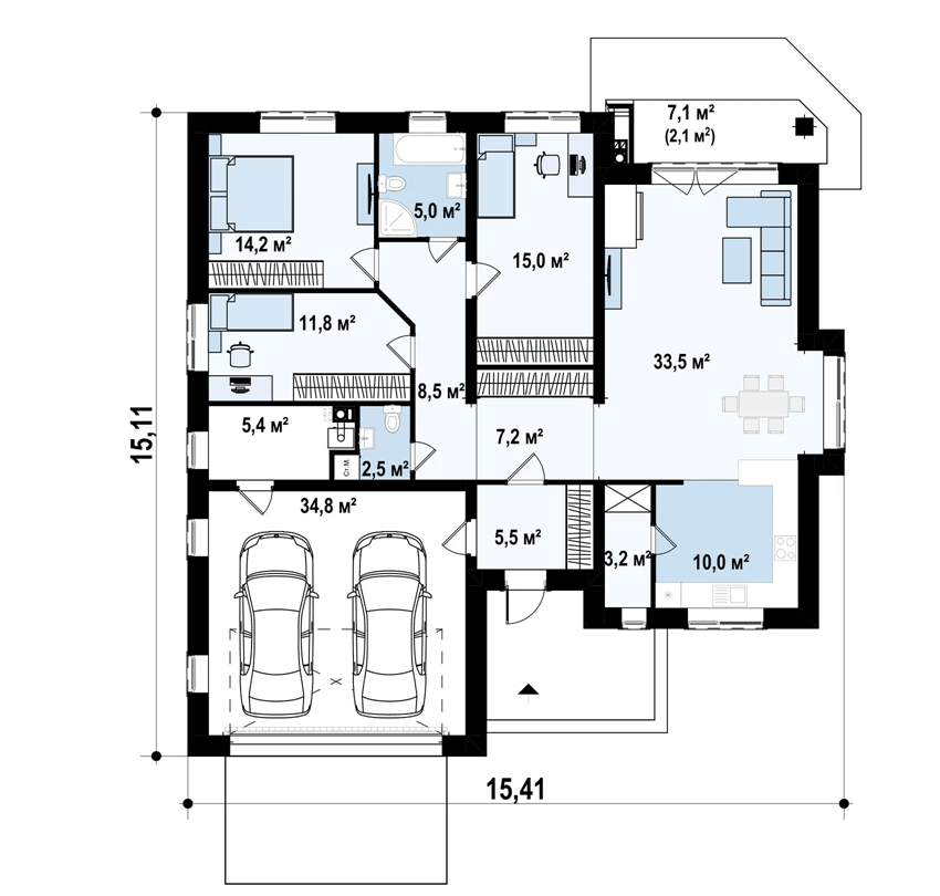 1 հարկանի հարմարավետ տուն ավտոտնակով: Ամեն ինչ 1 հարկի տակ