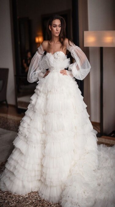 - Ռոմանտիկ և օդային են։ Ծալքերը ստեղծում են մեղմ դինամիկա և թեթևություն հաղորդում զգեստին՝ հարսնացուի տեսքը դարձնելով նուրբ և արտահայտիչ։