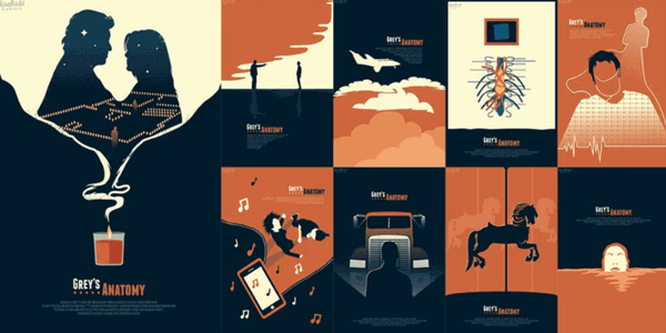 Հիշեք՝ մեկ դիզայն՝ մեկ տեսողական ոճ: Օրինակ՝ Grey’s Anatomy-ի պաստառների այս շարքը հետևողականորեն օգտագործում է հետևողական գունային գունապնակ և տրամադրություն: