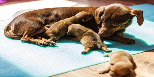 Ծնվելուց հետո առաջին 2 ժամվա ընթացքում, եթե ամեն ինչ լավ է անցել, էգին պետք է տաք կաթ կամ արգանակ տալ։ «Աղջկա» ուժերը վերականգնելու համար նրան անհրաժեշտ կլինի ճիշտ քանակությամբ կալցիում պարունակող սնունդ, բայց նվազագույն քանակությամբ սպիտակուց՝ լյարդ, սիրտ, ձու, կաթնաշոռ։ Կարելի է հում կամ խաշած բանջարեղեն, ձավարեղեն ( վարսակ, հնդկաձավար ): Նույնիսկ եթե ընտանի կենդանին սովոր է չոր կերերին, խորհուրդ է տրվում բնական սննդի տրամադրումը նախածննդյան և հետծննդյան շրջանում: