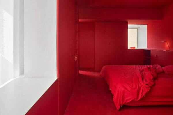 Կարելի է նաև կարմիրը անհատականացնել: Տվյալ դեքում կարմիրը կլինի ամենուր՝ առաստաղին, պատերին, դռներին, կահույքին, հատակին: Միայն սպիտակ ներկված պատուհանը տվյալ դեպքում կարող է կանխել գունային բլոկը և խորհդանշել դեպի լույս տանող ճանապարհը: