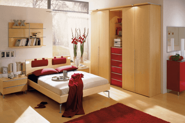 Մի փոքր կարմիր տարածքը պատի վրա և մահճակալի կարմիր ծածկոցը ձեր ննջասենյակին կհաղորդեն նոր և կրքոտ շունչ: