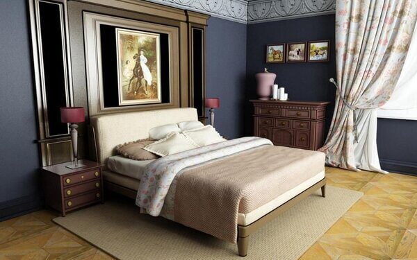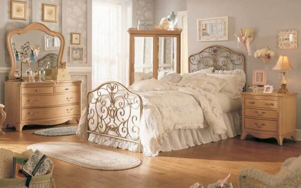- բնական ձեռագործ փայտե կահույք, փափուկ, ցածր կախովի բազմոցներ: Փորագրված գլխամասով մահճակալը կարելի է զարդարել գեղեցիկ ծածկոցով,