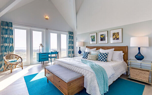 - բնական նյութերի օգտագործում՝ փայտ, քար, մետաղ և չեզոք գունապնակ։ Հիմնական գույները ներառում են սպիտակի և երկնագույնի երանգները: Դեղինն ու կարմիրը կլինեն օժանդակ, ավելի քիչ,